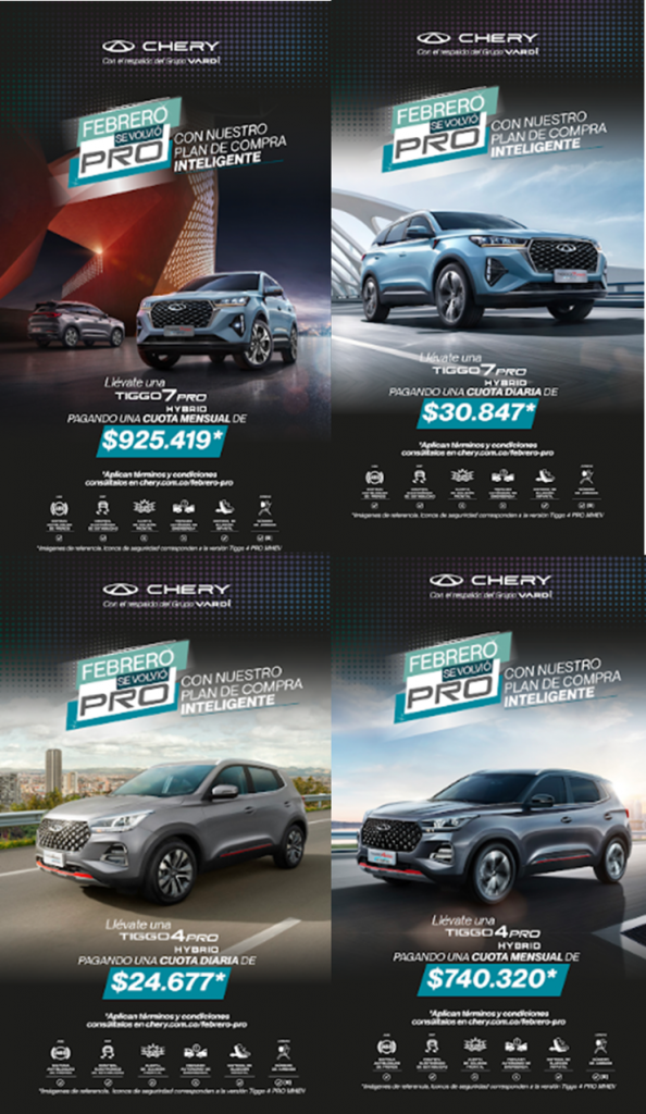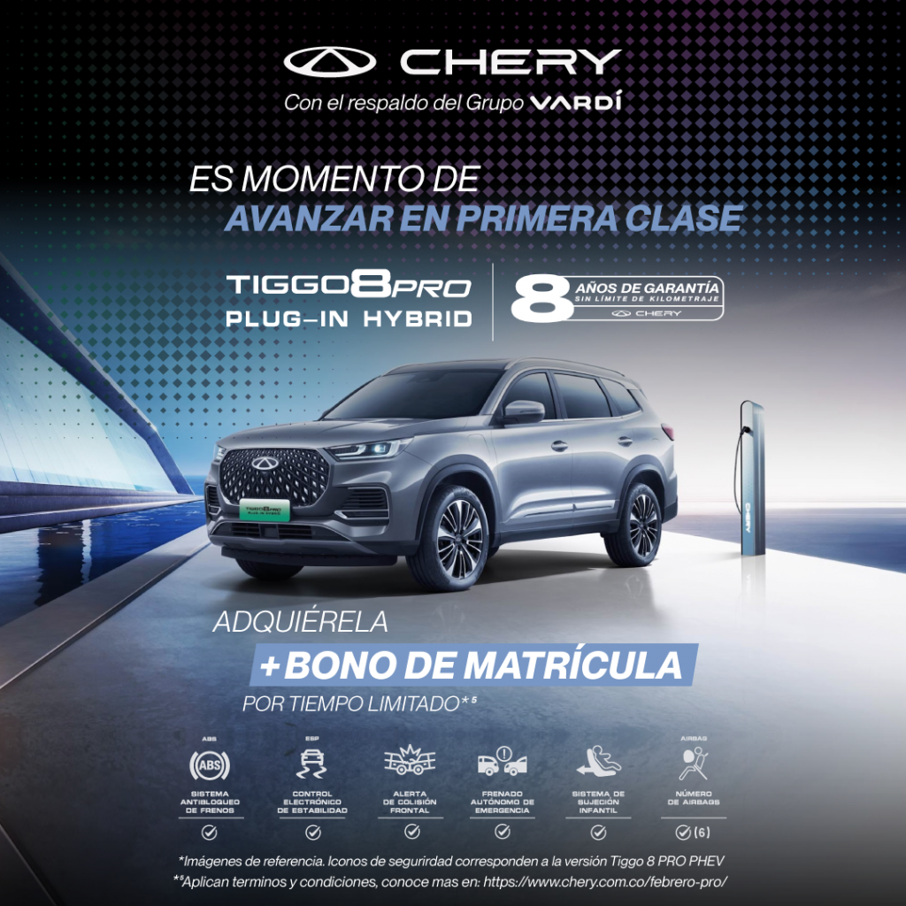 Los siguientes bonos y beneficios estarán disponibles en todos los concesionarios de CHERY COLOMBIA a nivel nacional. La vigencia de estos bonos y beneficios comprende entre el 1 de febrero y el 28 de febrero del 2025.